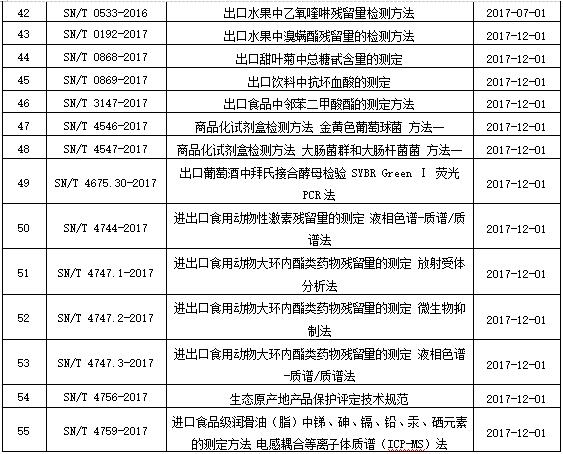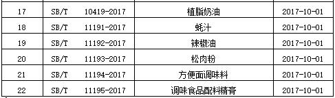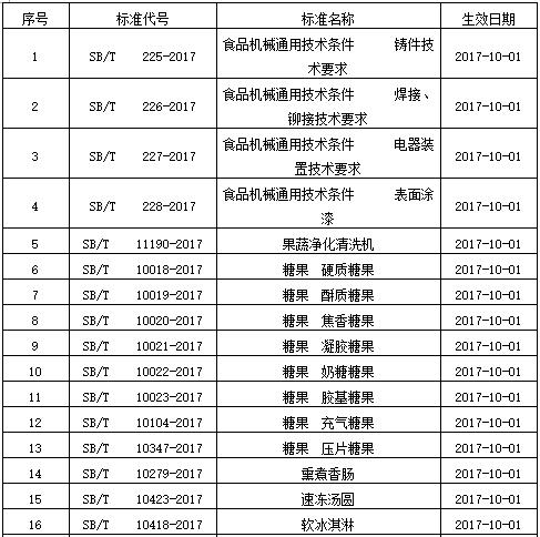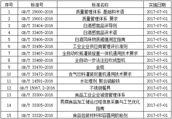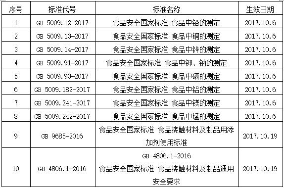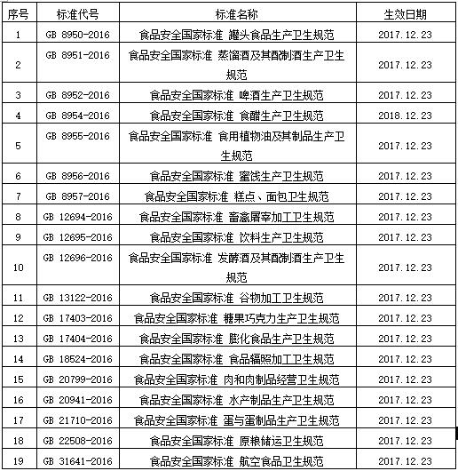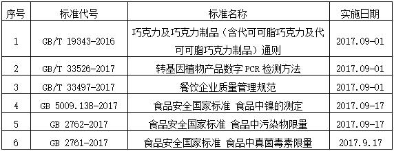 2017年下半年即將實施的食品方面國家標準