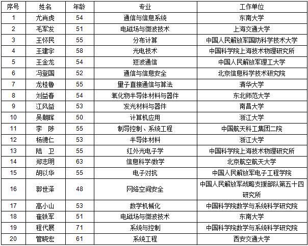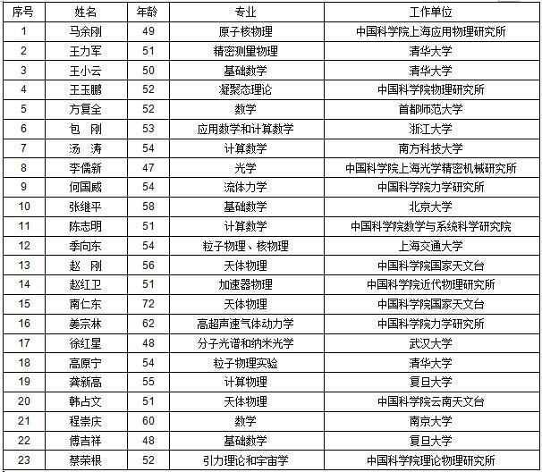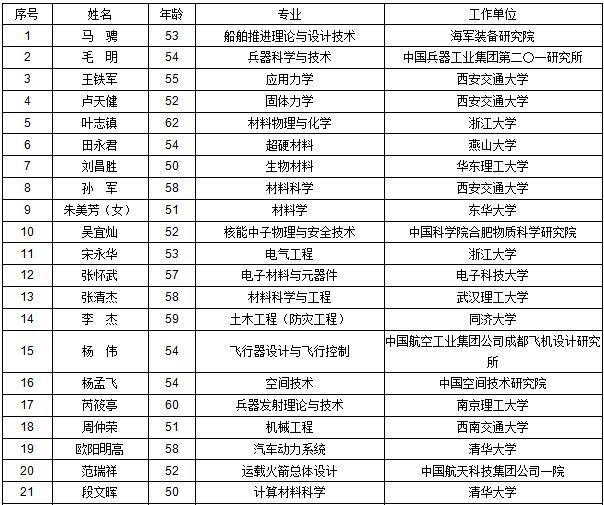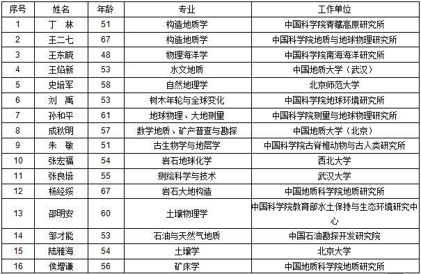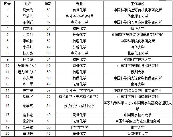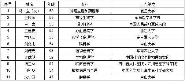 2017年中國科學(xué)院院士增選初步候選人名單